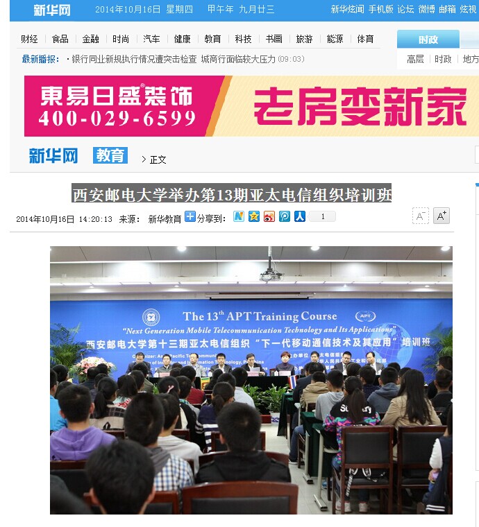 据了解,本次培训的主题为“下一代移动通信技术及其应用”,来自不丹、印度、马尔代夫、马来西亚、尼泊尔、巴基斯坦、斯里兰卡、泰国和越南9个国家的电信官员将在该校参加为期12天的培训。培训课程包括《跨边界的移动支付与风险管理研究》、《移动增值业务的发展》、《下一代移动通信中的天线技术》、《智慧城市理念与经验》、《LTE-Advanced系统的无线资源调度》、《移动物联网的发展及应用》、《实验:波分复用器特性测试》、《超短激光脉冲的产生》、《基于光纤的全光信号处理的超高速光纤通信系统》、《实验:光纤色散特性测试》、《学员关于本国下一代移动通信的报告》以及相关的实验课程。培训期间,学员还将考察参观中国移动陕西分公司基站、西安电信局、华为西安研发中心等在陕的电信企业和研究机构。