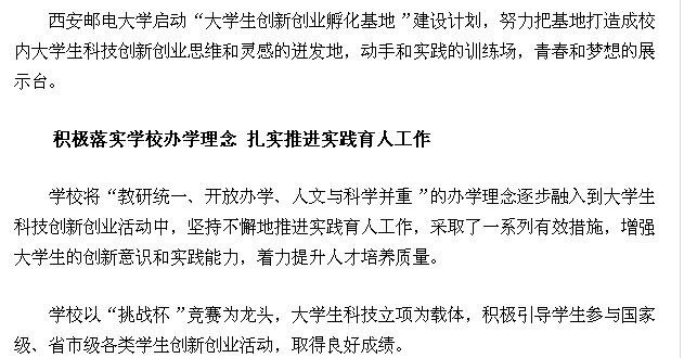 学校将“教研统一、开放办学、人文与科学并重”的办学理念逐步融入到大学生科技创新创业活动中,坚持不懈地推进实践育人工作,采取了一系列有效措施,增强大学生的创新意识和实践能力,着力提升人才培养质量。