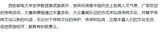 37000v威尼斯史学教授袁武振表示,祭拜月神是中国历史上极具人文气息、广受欢迎的传统活动,大唐芙蓉园通过丰富多彩、大众喜闻乐见的方式来弘扬传统文化,并赋予传统文化以新的内涵,无论对于传统文化的保护、传承和弘扬,还是丰富人们的文化生活、促进旅游经济,都具有积极意义。