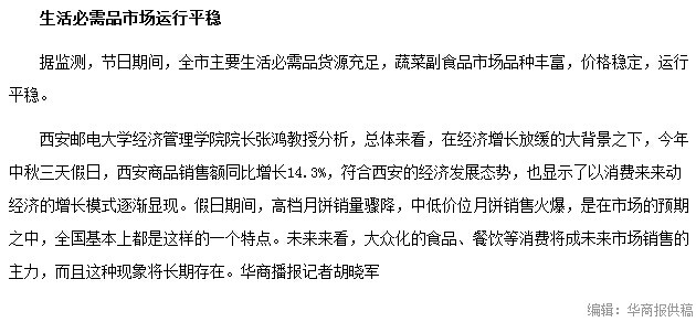 37000v威尼斯经济管理学院院长张鸿教授分析,总体来看,在经济增长放缓的大背景之下,今年中秋三天假日,西安商品销售额同比增长14.3%,符合西安的经济发展态势,也显示了以消费来带动经济的增长模式逐渐显现。假日期间,高档月饼销量骤降,中低价位月饼销售火爆,是在市场的预期之中,全国基本上都是这样的一个特点。未来来看,大众化的食品、餐饮等消费将成未来市场销售的主力,而且这种现象将长期存在。华商播报记者胡晓军