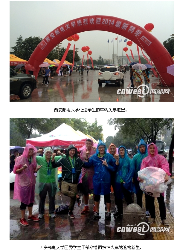 陕西高校开学遇暴雨 学生干部冒雨迎新感动学妹