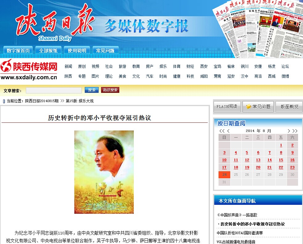 《陕西日报》 http://esb.sxdaily.com.cn/shtml/sxrb/20140815/242458.shtml