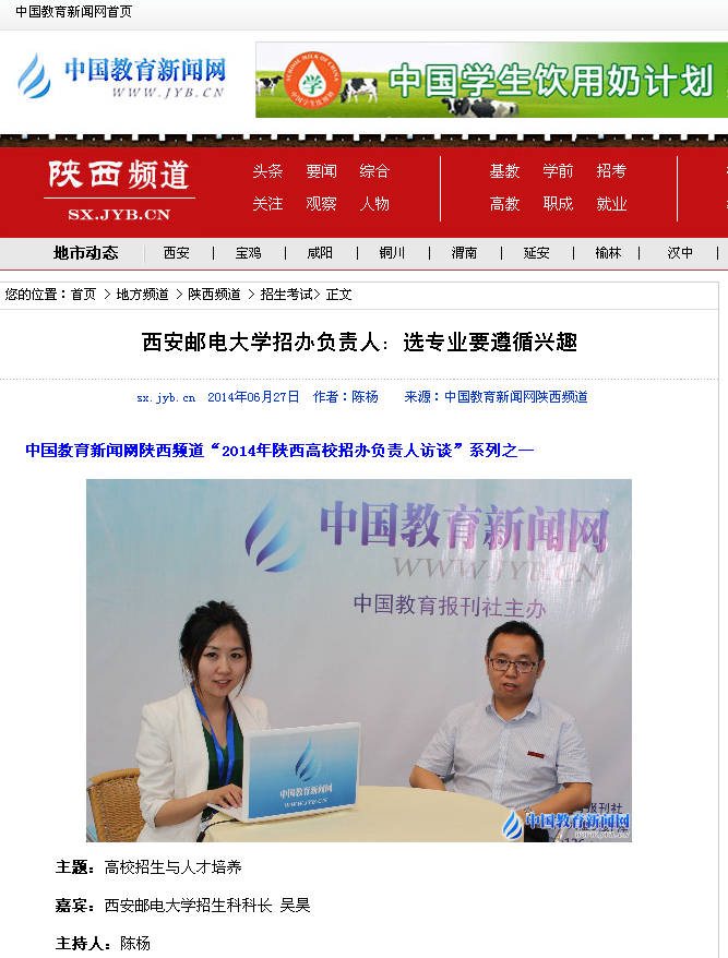 主持人:谢谢吴科长,希望考生能够如愿进入37000v威尼斯。今天的访谈到此结束,欢迎广大考生和家长登录中国教育新闻网陕西频道了解更多资讯。