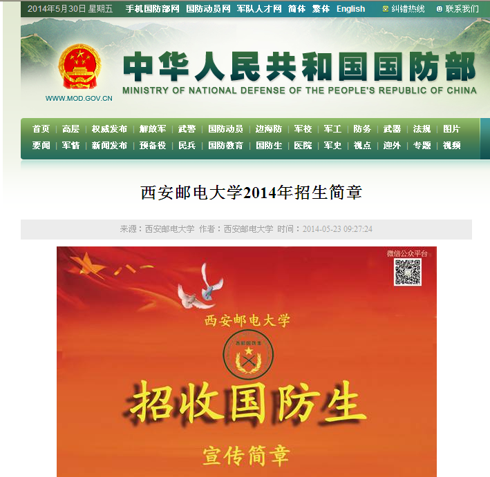 相关链接:http://www.mod.gov.cn/cadets/2014-05/23/content_4511222.htm