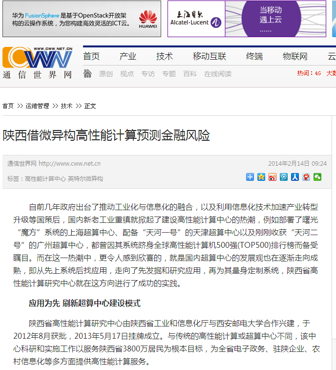 “这次成功的测试,只是我们在应用研究方面的一个开头,接下来研究工作会涉及到其他更多领域,包括广播电台、计划生育、卫生医疗系统等等”, 周晓辉表示:“随着‘陕西模式’的壮大,随着‘西咸大数据产业新区’的发展,未来陕西高性能计算研究中心也将承担更多的重任,在未来将会看到越来越多的应用将借助高性能计算的强大优势来更好的服务社会,造福人民”。他相信,为金融应用成功带来了性能提升的英特尔微异构技术,也将在陕西省高性能计算研究中心未来的应用研究中,发挥越来越重要的作用。