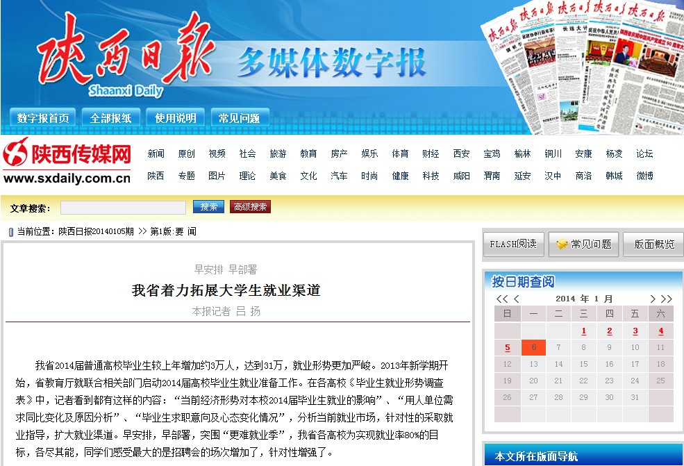 【陕西日报】报道威尼斯突出特色 加强就业指导
