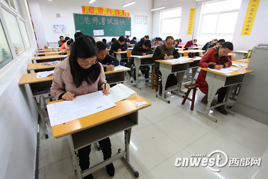 11月16日,来自西安市各个区县的62975名中小学教师参加了“2013中小学教师综合素质测试”。西安市中小学教师素质教育能力测试是推进西安市中小学教师素质教育的一项重要举措,西安市将通过这一举措,力争用5年时间,使西安市中小学教学能手、骨干教师、学科带头人、特级教师、名师等高端教育人才总数占到全市中小学教师总人数的10%。